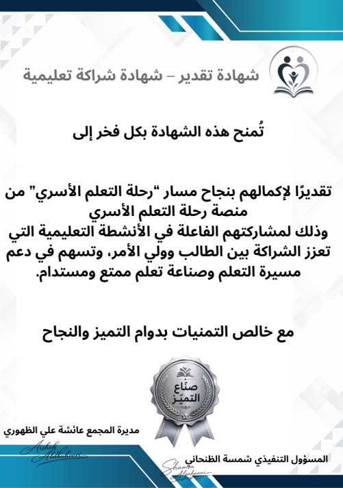 تُمنح للأسر والطلاب فور إكمال المسار التعليمي — باسمك مباشرة